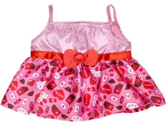 Say hello to the perfect Valentine’s Day look for your furry friend! This pink Hello Kitty® dress for stuffed animals has an all-over pattern of hearts, love notes, chocolates and other sweet icons. Give your Sanrio®️ plush the cutest outfit for Valentine’s Day fun!